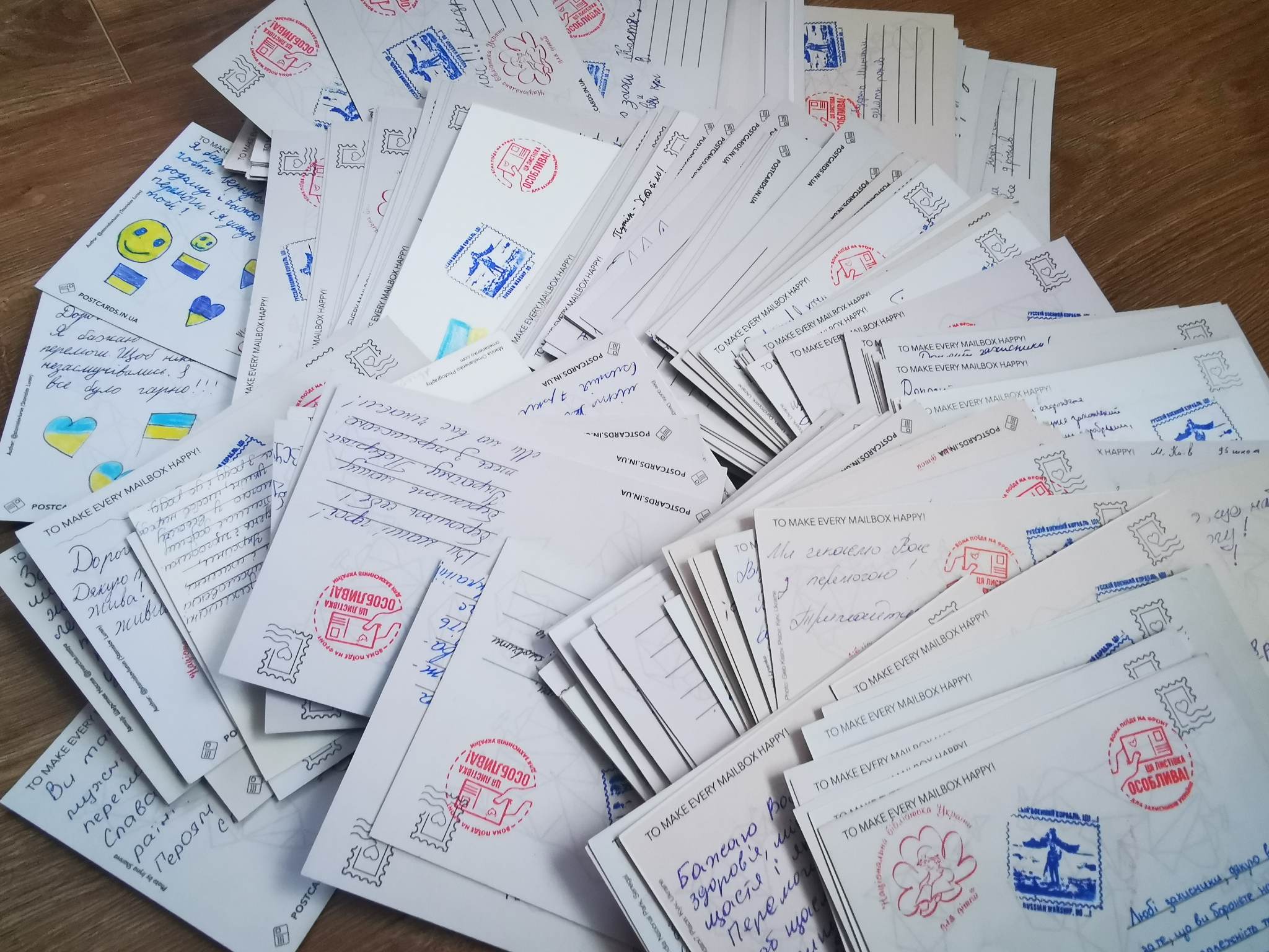 Молода дівчина Марічка Лисенко з волонтерської ІТ-спільноти м. Запоріжжя започаткувала та стала координувати новий проєкт, який стартував 1 квітня 2022 р. І почалося все із передачі 150 листівок для заповнення у 2 волонтерські штаби міста. А потім усе закрутилося і швидко масштабувалося. Крім Запорізької, до цієї ініціативи долучилися Вінницька, Івано-Франківська, Львівська, Закарпатська, Київська, Волинська області, а також міста Краків, Варшава та Мюнхен. Особливо активними виявилися освітні та культурні заклади України. Кількість переданих на фронт мотиваційних листівок сягнула майже 3 тисяч.