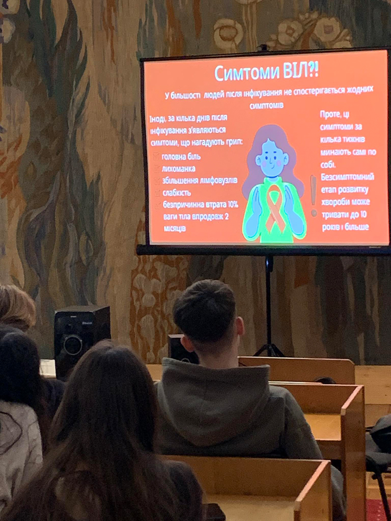 Особливу увагу гостя приділила заходам безпеки: як вберегтися від цієї смертельної хвороби, зазначила телефонний номер Загальнонаціональної гарячої лінії з питань ВІЛ/СНІДу, де можна проконсультуватися з усіх питань. Підлітків також зацікавила статистика щодо розповсюдження захворювання на території України.