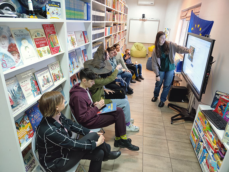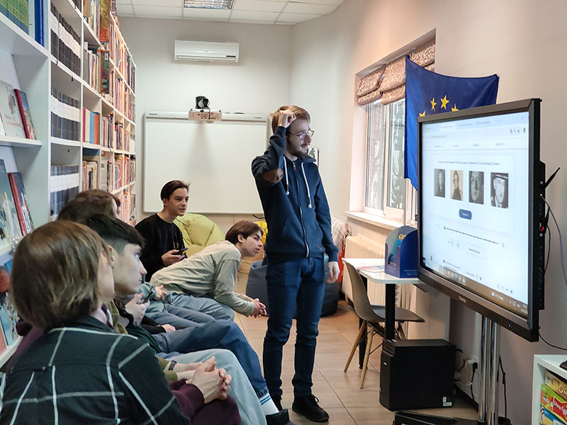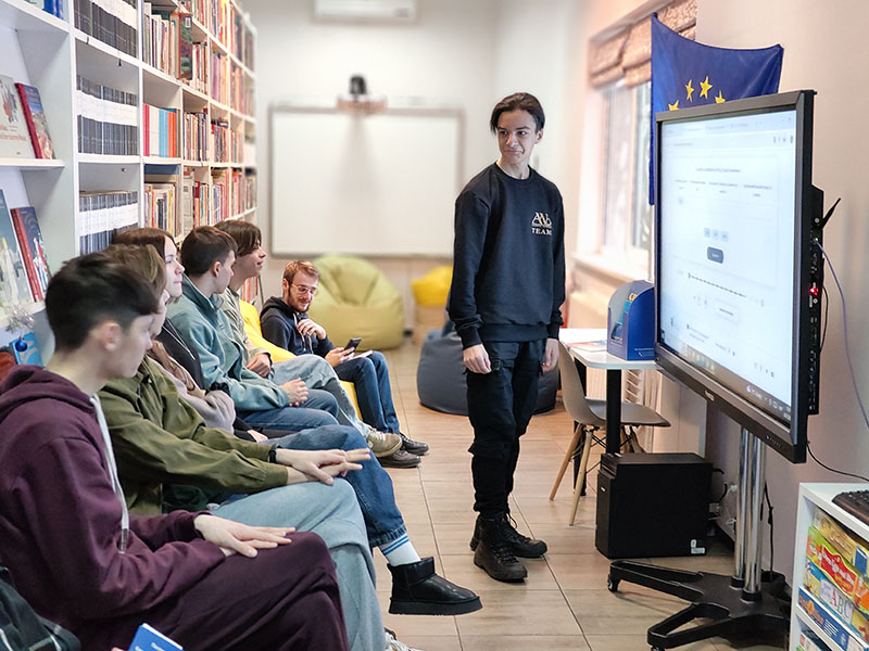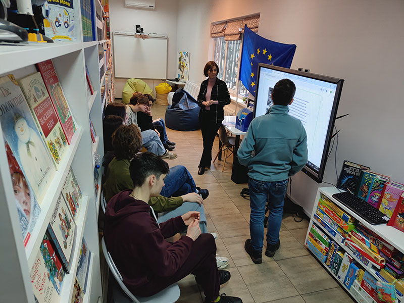 Старшокласники, які завітали до Національної бібліотеки України для дітей, змогли поглибити свої знання про Європу за допомогою платформи Євроквіз. Під час заходу учні виконували завдання вікторин, спрямованих на вивчення різних аспектів життя в Європі.
