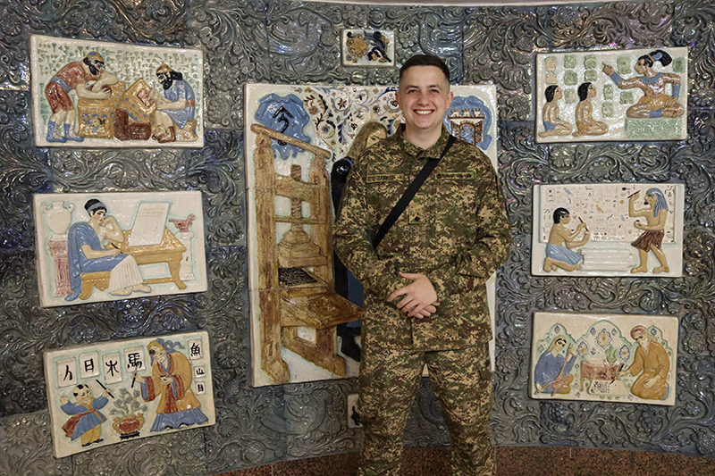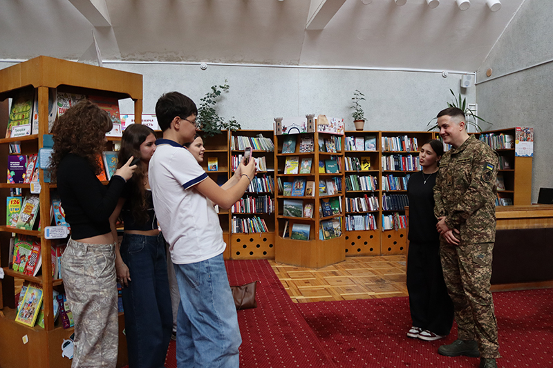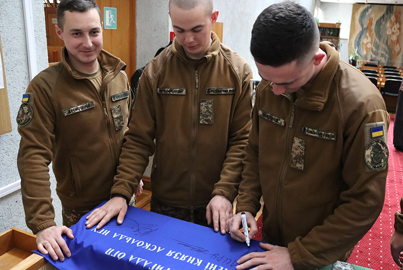 Дякуємо військовослужбовцям НГУ, які підтримали Артема під час виступу, а по завершенні подарували бібліотеці прапор, на якому залишили свої підписи і побажання.