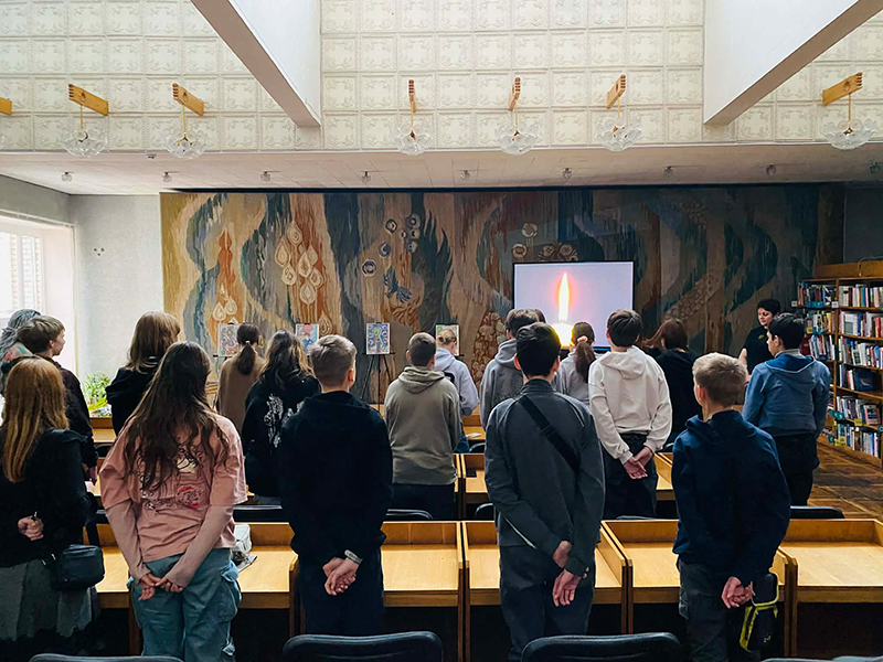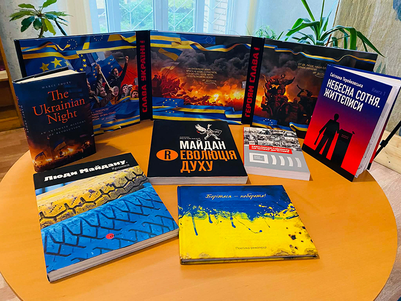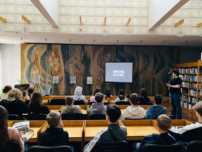 Присутні вшанували пам’ять загиблих під час Революції Гідності, і тих, хто потім захищав нашу країну від ненаситного східного сусіда. Бібліотекар порекомендувала підліткам розпитати батьків про їхні спогади щодо Євромайдану та документальних фільмів, в яких йдеться про події тієї зими.