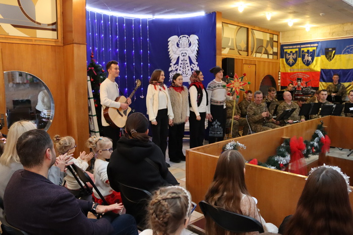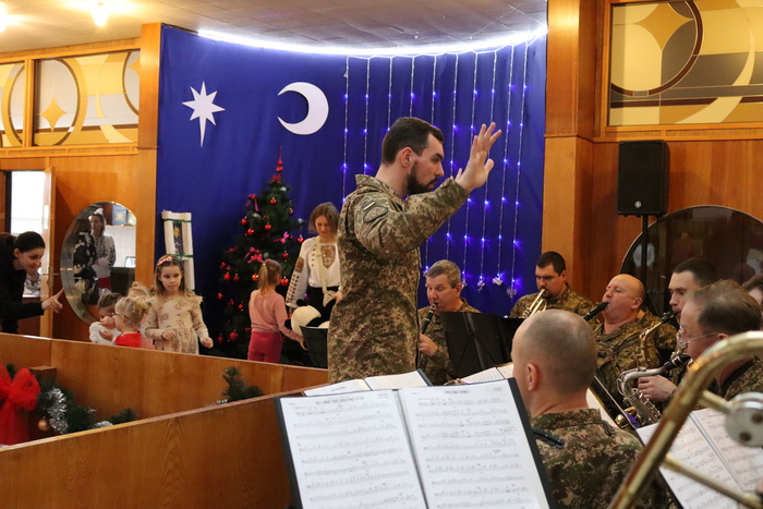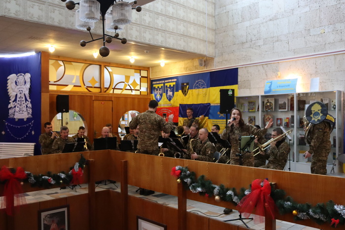 Різдво в Україні неможливе без музики. Святковий концерт відвідувачам бібліотеки подарував оркестр військової частини 3030 25-ї бригади охорони громадського порядку ім. Князя Аскольда Національної гвардії України. Диригент – Василій Канчій.