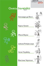 Олесь ІЛЬЧЕНКО. Олесь Ільченко про Леонардо да Вінчі, Карла Ліннея, Жюля Верна, Джона Рокфеллера, Лесю Українку, Вінстона Черчілля / Олесь Ільченко ; худож. М. Баликін. - К. : Грані-Т, 2007. - 92 с. : ілюстр. - (Життя видатних дітей).