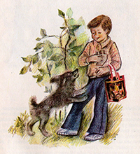 Костик хотів було нагримати на Бульку, але побачив німий докір в його карих очах і зніяковів.