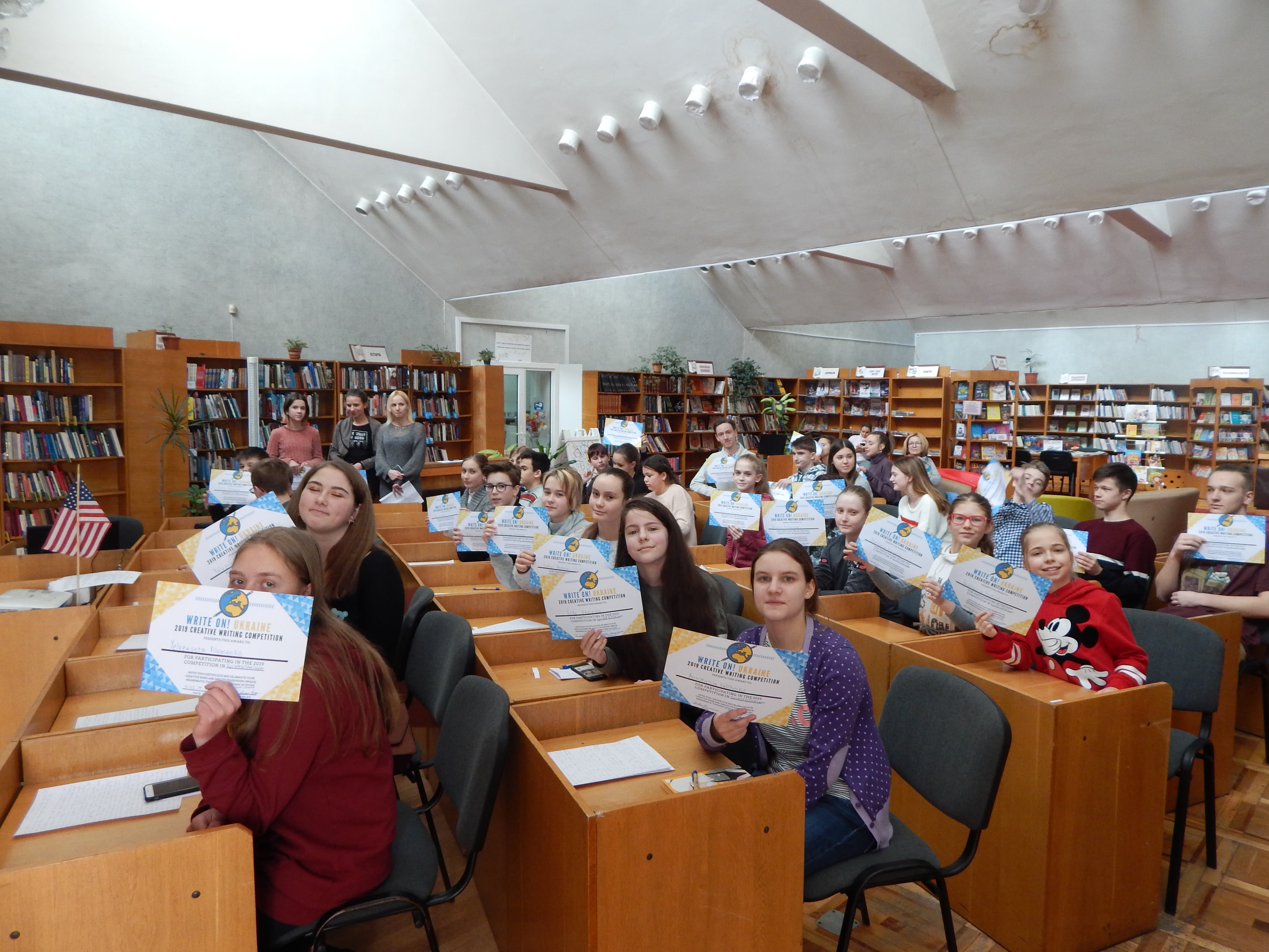 Кожен учасник-читач бібліотеки отримав сертифікат про участь у конкурсі від обласного координатора, учасниці програми Корпусу Миру Джессіки Бесснер.